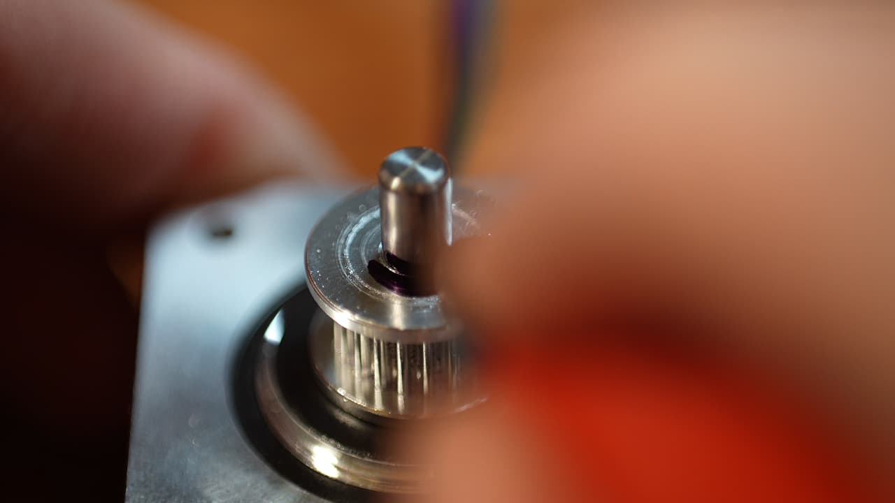 Drop on one of the 10mm thick pulleys and mark the shaft. -