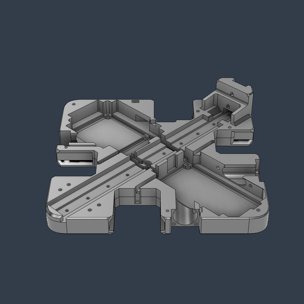 This links the X and Y rails together to create the XY plane. A stiff material, resistant to warping and drift, would be ideal like CF-PETG.